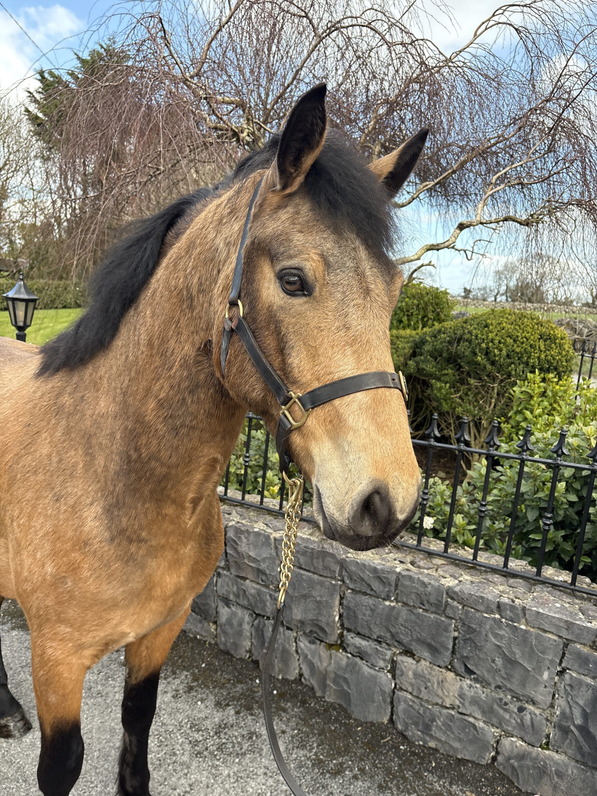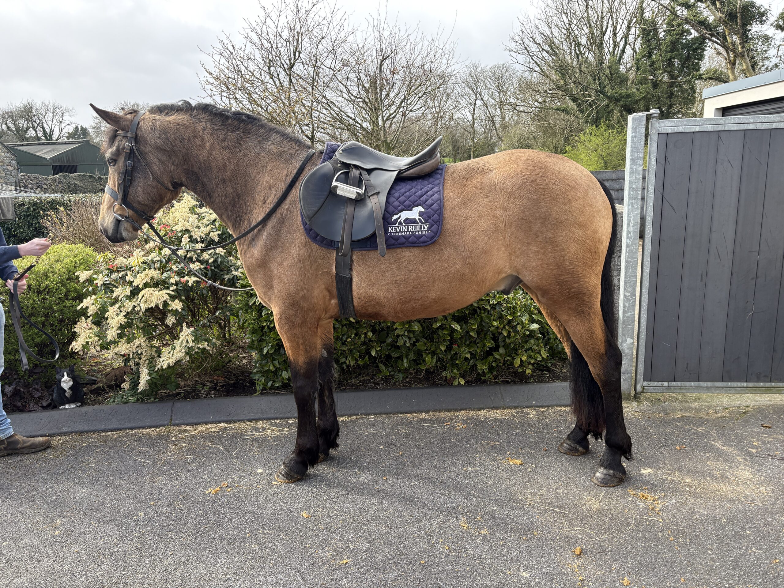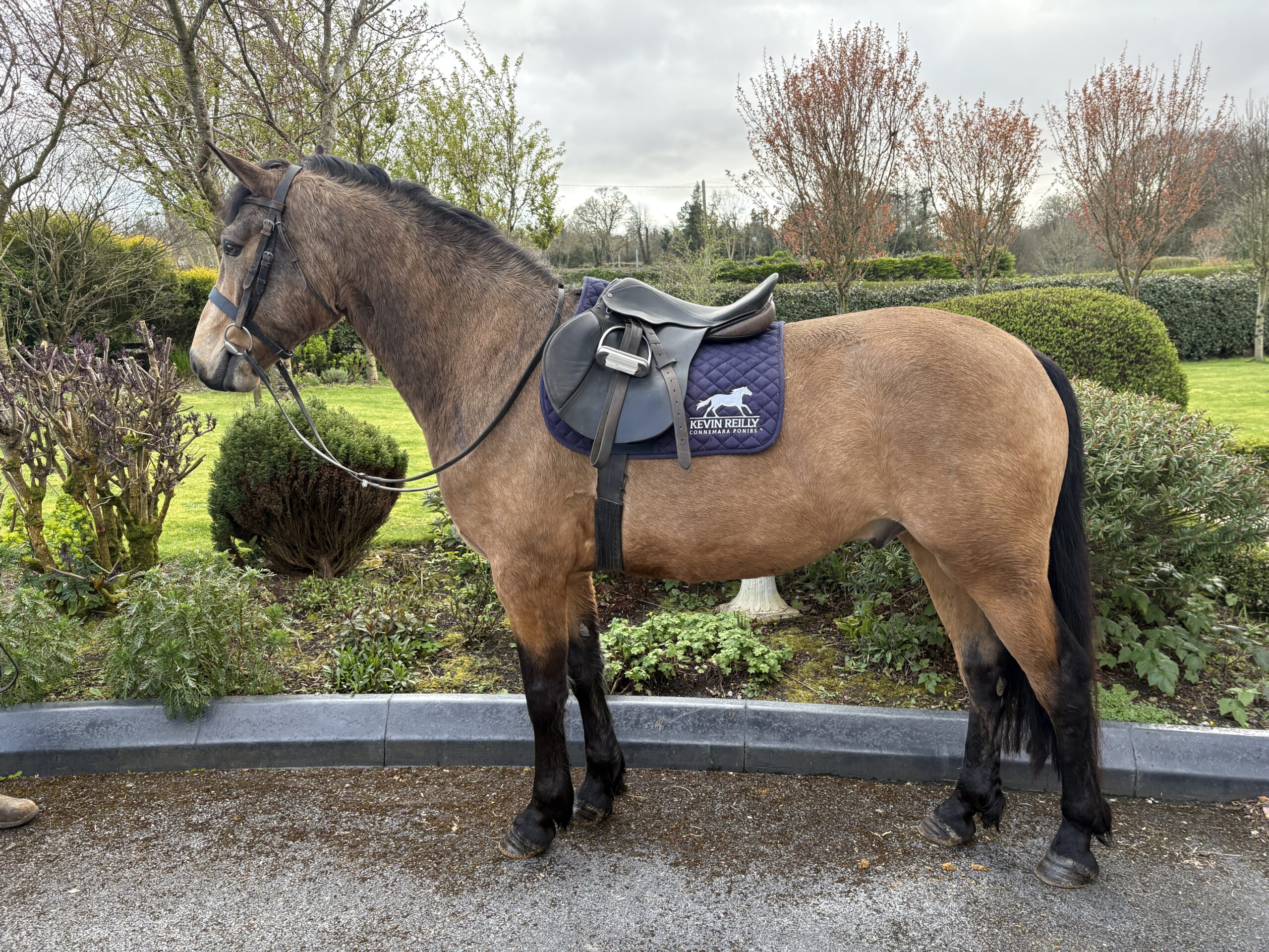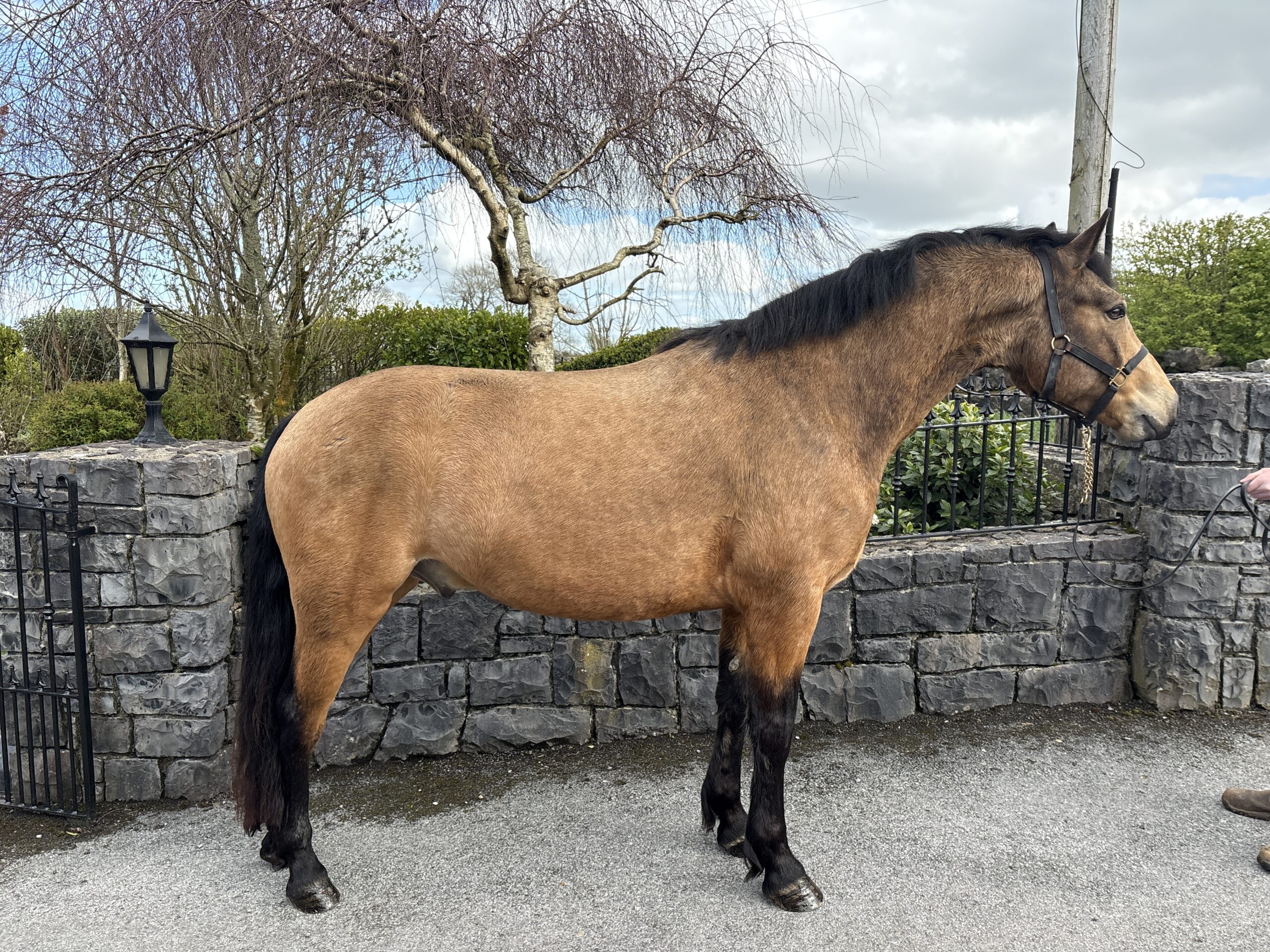 Bentley is a gorgeous 4 year old 15 2 hh dun registered connemara gelding. Bentley has grown up with us from a foal and  is very well handled. He is broken and riding away quietly and is enjoying life quietly hacking out around the farm. He is by caherlistrane bay out of a Drymillis Bridgeboy mare. Bentley moves well and is very well put together with good bone and plenty of power & subsance. He is sure to excel under saddle as he continues his education. Horses like this are extremely difficult to find.